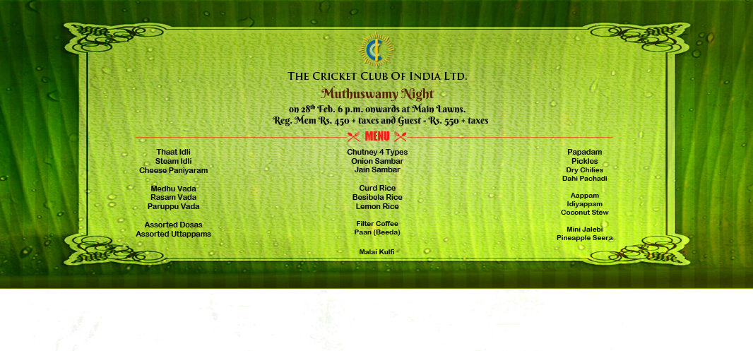 Reg. Mem Rs. 450 + taxes and Guest - Rs. 550 + taxes